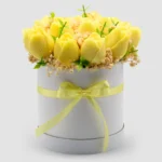 Μπουκέτο με Κίτρινες Τουλίπες σε Κουτί Άρωμα Πασχαλιά 17×12εκ.